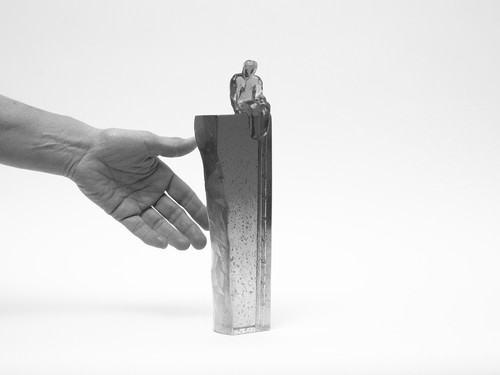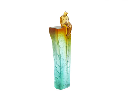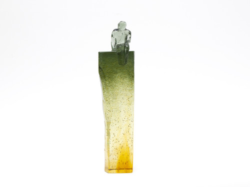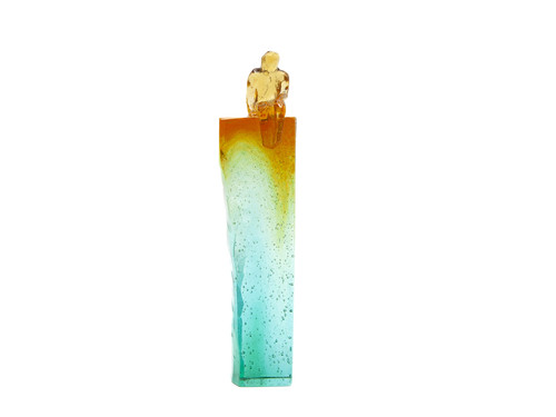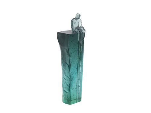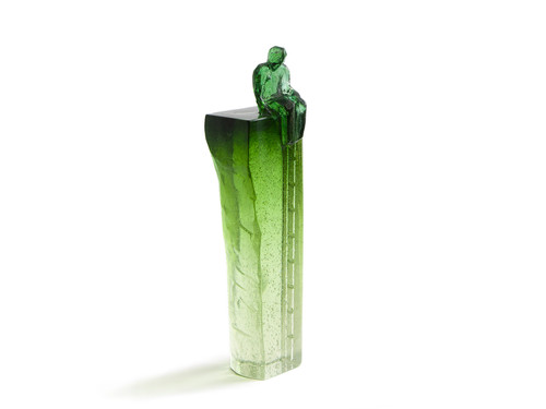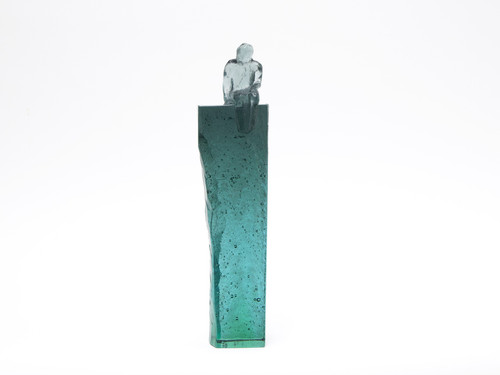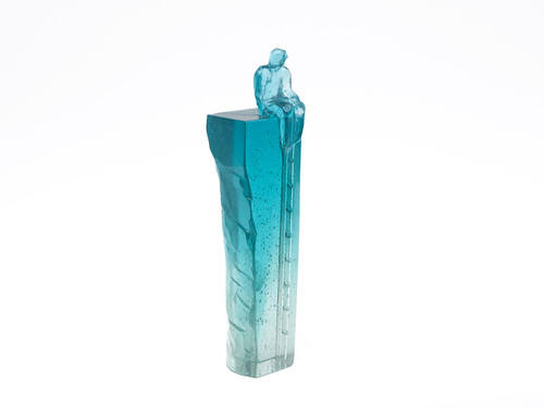 Headspace is a striking cast glass sculpture standing 270mm tall. It features a faceted, universal figure perched at the top, with a delicate ladder climbing up one side; a quiet metaphor for growth, and an offering for the return journey. The artwork has a polished front, is fully transparent, with soft, blended colours flowing through it, giving it a dreamlike, almost meditative quality. It is a piece that invites you to pause and reflect on where you are, and where you're headed.